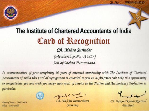 Mr. Surinder Mehra, managing partner of the firm, has 52 years of post-qualification experience and has specialized in direct taxation, Goods and Service Tax matters, audits and financial management. He has handled a large number of clients including Indian and foreign companies. The foreign companies include Estee Lauders, USA, and its subsidiary ELCA Cosmetics Pvt. Ltd. in India. All affairs in India were handled by us for more than 10 years. We also did due diligence for Forest Essentials, an entity taken over by them. The beauty products for women and men of Estee Lauder included premium Estee Lauder, MAC, Clinique, DKNY and Forest Essential. It was during that time that their brands were newly launched in India in newly built malls throughout the country.